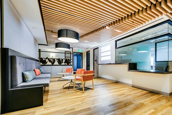 Project Control Group Pty LtdRork Projects was engaged to manage the construction of the 871 sqm fitout at Level 8, 14 Moore St, Canberra City, for the Administrative Appeals Tribunal. The fitout was designed to provide a high quality office and tribunal hearing environment to meet the client's budget and space requirements. The joinery package was the critical trade due to the bespoke timber feature ceiling, signage panels and various cabinetry throughout.