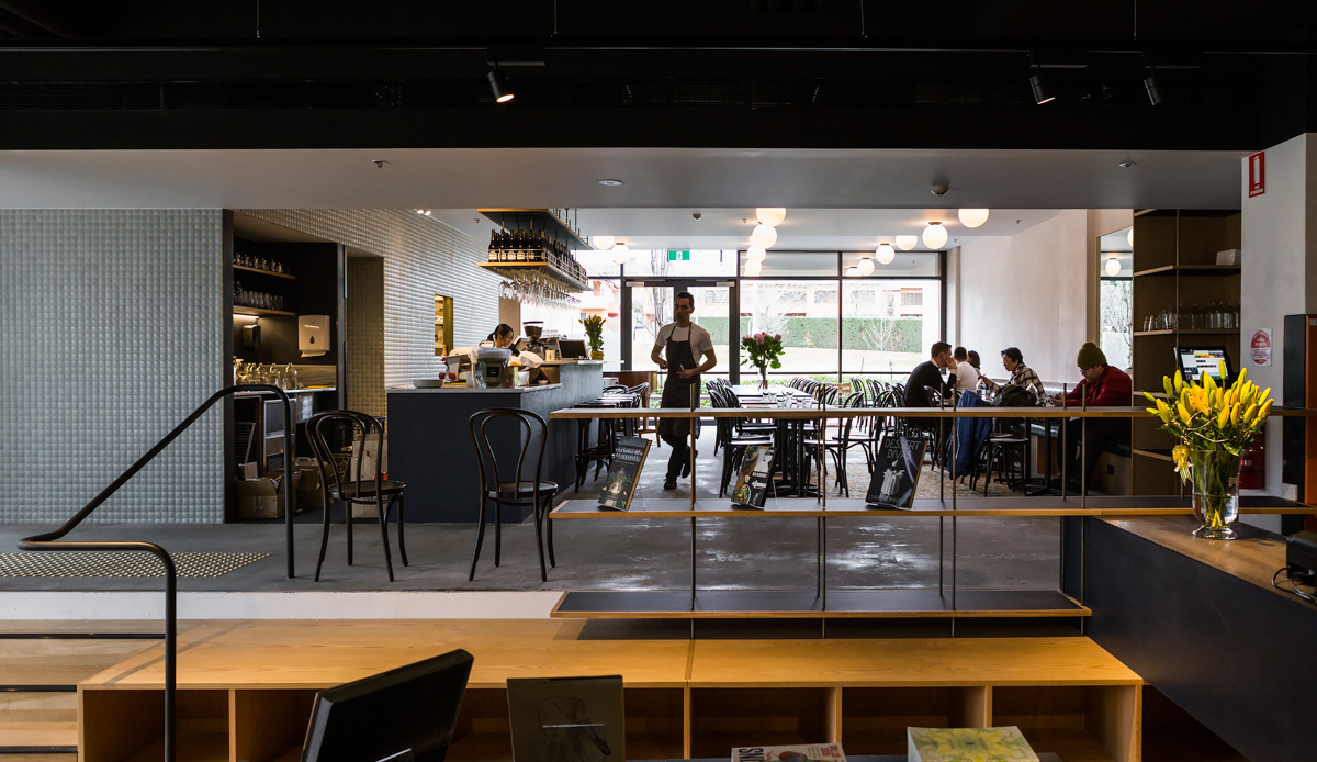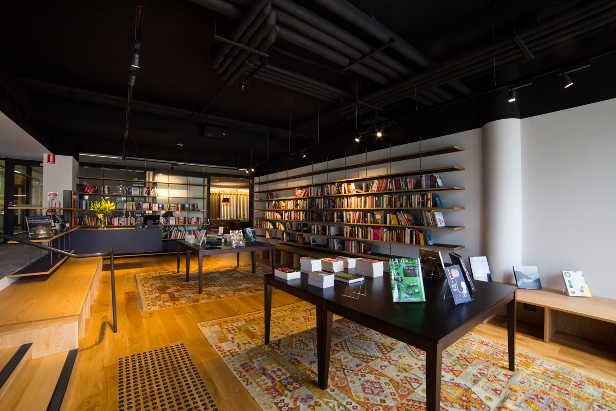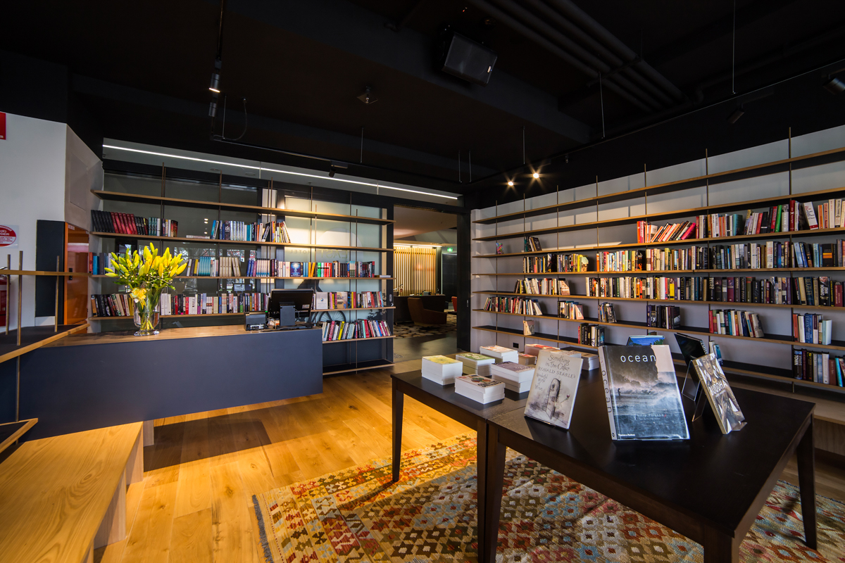 Anthony Gill ArchitectRork Projects were contracted to provide Construction Management services for the high-end café and retail fitout of the Muse Café and Bookshop, located in the East Hotel, Kingston. A highlight of the scope of works includes the extensive joinery package, especially notable in the bookshop. Other works included partitions, painting, flooring (including hospitality-specific non slip flooring) tiling and tactiles (extensive waterproofing), mirrors, electrical works (pendant lighting) and full hydraulics. Particular consideration was given to the installation of the full industrial kitchen, as space was limited and complete usability the priority.